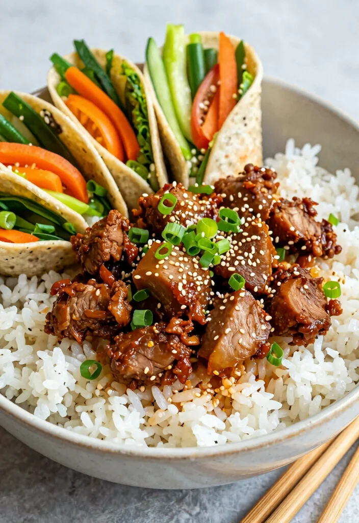 Serve this pulled pork in wraps or over rice, garnished with green onions and sesame seeds for added texture. It’s a fun way to explore different flavors while keeping your meal healthy and straightforward.