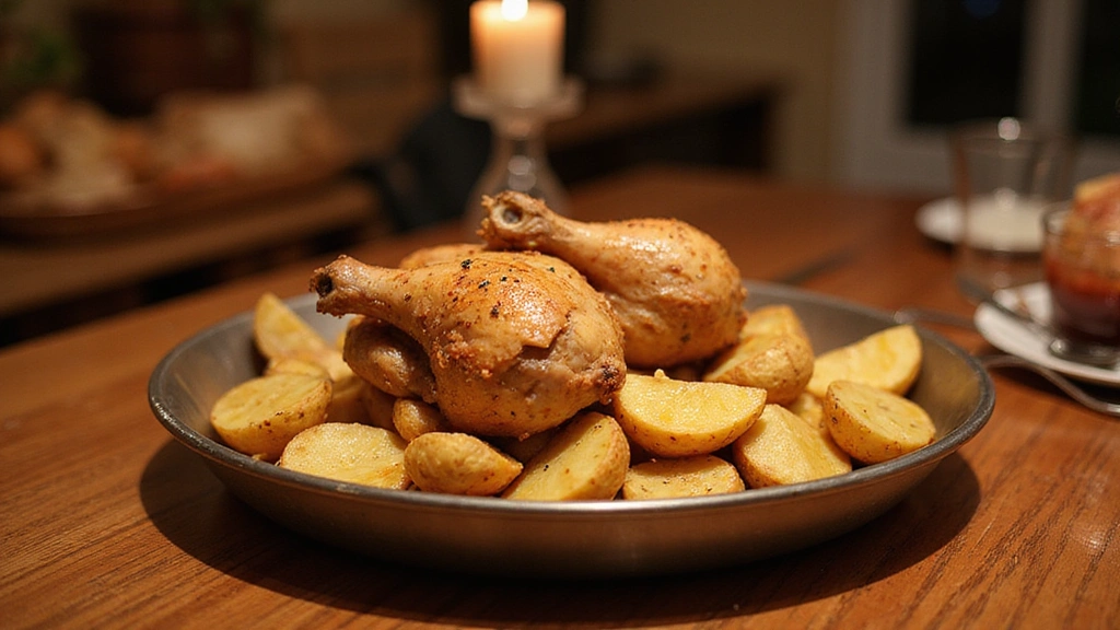 • Traditional Presentation: Serve on a large platter with chicken arranged in the center surrounded by potatoes, garnished with fresh herbs.