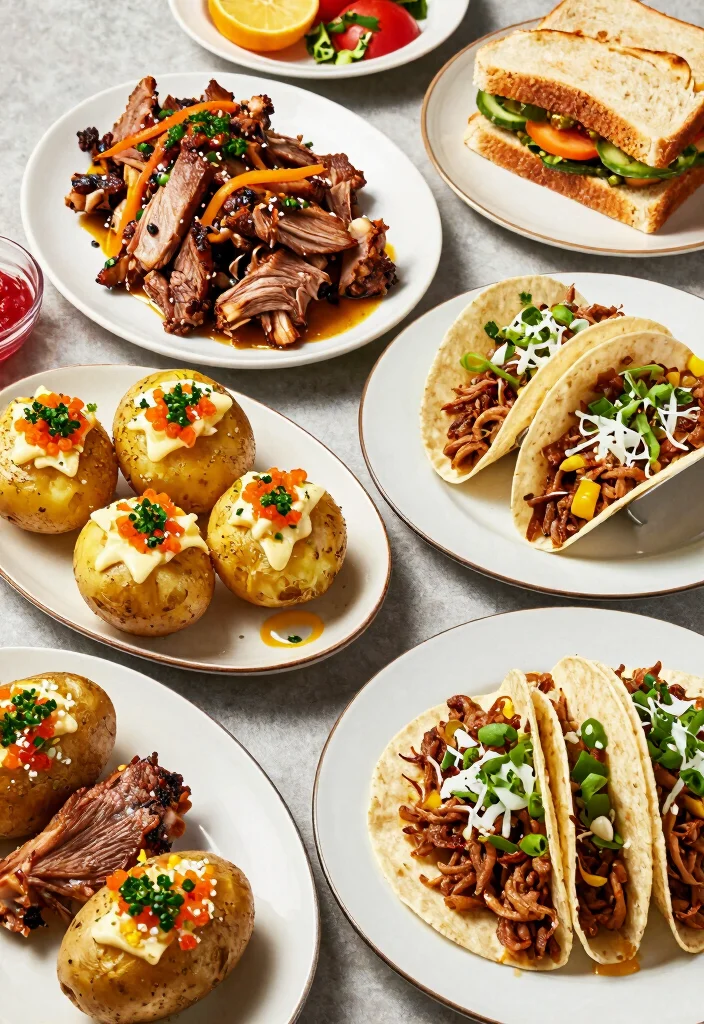 – Stuffed Potatoes: Load baked potatoes with pulled pork, sour cream, and chives.