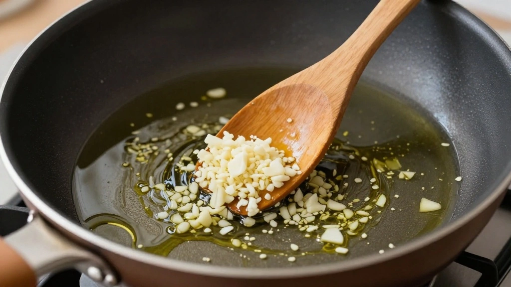 Infusing Garlic: Heat oil and garlic for 1-2 minutes at medium-low heat until fragrant. Do not allow garlic to brown, as this can cause bitterness.