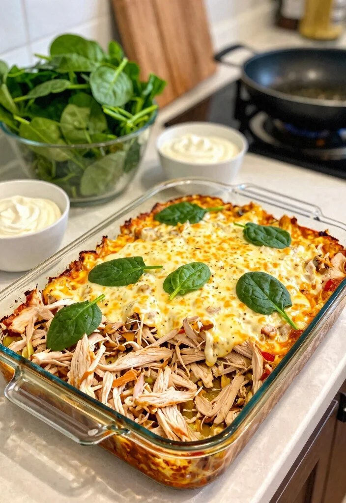5. Creamy King Ranch Chicken Casserole with Spinach