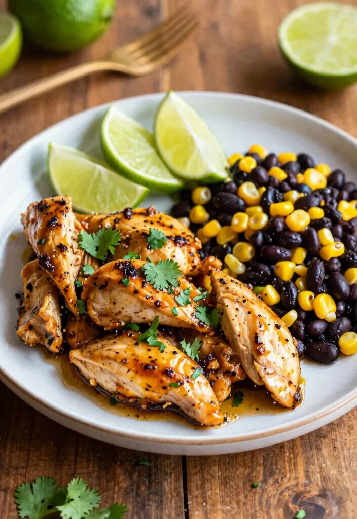 Add a zest of flavor to your dinner with Chipotle Lime Chicken! This recipe features a spicy chipotle marinade balanced by refreshing lime juice, giving you a flavorful kick that everyone will love. The chicken turns out juicy and tender, with a smoky essence that pairs perfectly with black beans and corn for a vibrant and colorful meal.