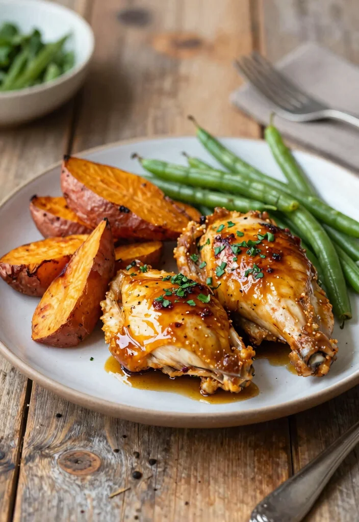 Elevate your dinner with Mustard Maple Chicken, where sweet meets tangy in a delicious blend! This recipe combines a flavorful mustard marinade with maple syrup, creating an irresistible glaze that caramelizes beautifully in the oven. It’s an easy yet impressive dish that pairs perfectly with roasted sweet potatoes and green beans for a complete meal bursting with flavor.