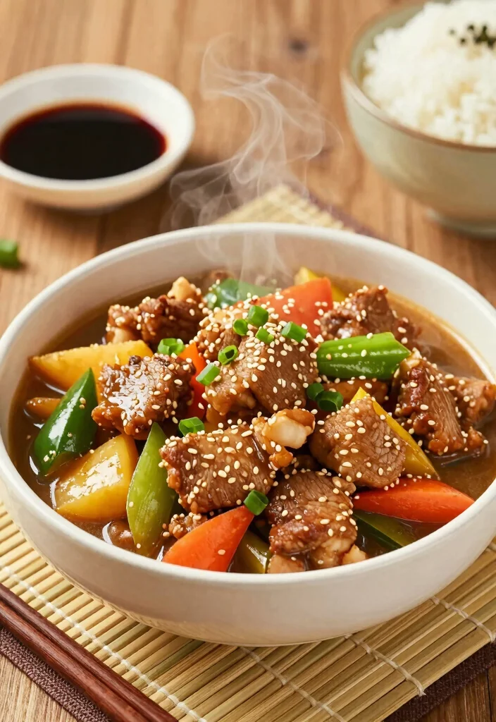 Add an exciting twist to your stew with this Asian-inspired sesame pork stew! Featuring soy sauce, sesame oil, and fresh ginger, this dish is both hearty and full of flavor. It’s perfect for those looking to bring a taste of the East into their home cooking.