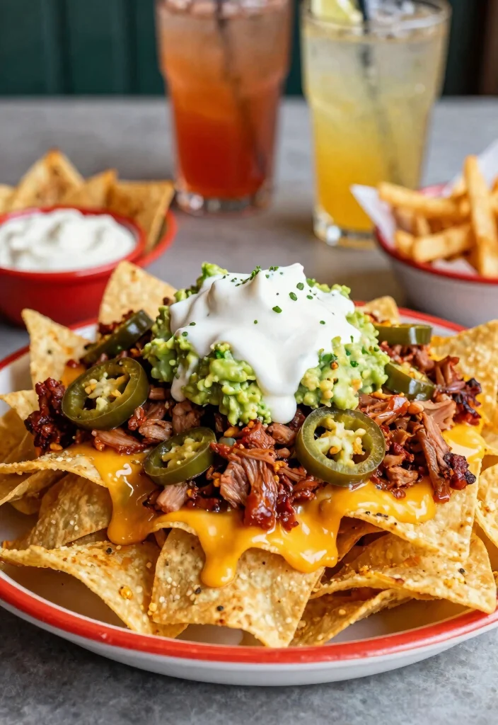 Looking for a crowd-pleasing snack? Pulled pork nachos are your answer! These nachos, layered with crunchy tortilla chips, gooey cheese, and hearty pulled pork, are perfect for game day or movie night. Top with jalapeños and guacamole for a fun twist that everyone will love.