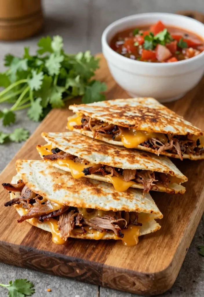 – Creamy pulled pork quesadillas or loaded nachos for a crowd-friendly option.